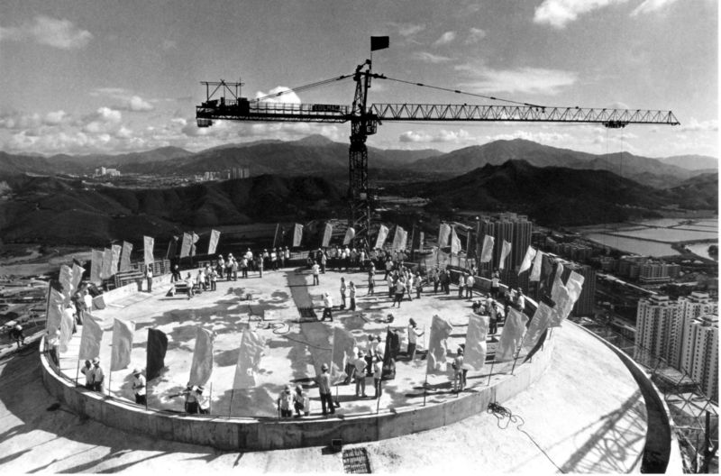 在《深圳实验》一书中[1],杜鹃写道,1981年11月,刚新官上任几个月的深圳市长梁湘,邀请了各省市级领导来罗湖的竹园宾馆小会一番。在这里,梁湘诚恳邀请大家共同筹资修建未来的中国第一高楼,国贸大厦。大厦于1982年的5月开始动工,并创下了“一天盖三层楼”的记录,俗称“深圳速度”。但实际上,由于资金和设备不足,及技术限制等问题,修建初期并非一帆风顺,光是建好大厦第一层就耗费了大约15天的时间。顶着各方的压力,总工程负责人不得不同各部门的人周旋商讨,以筹来更多的资金买更合适和专业的设备,以此解决具体的技术问题。