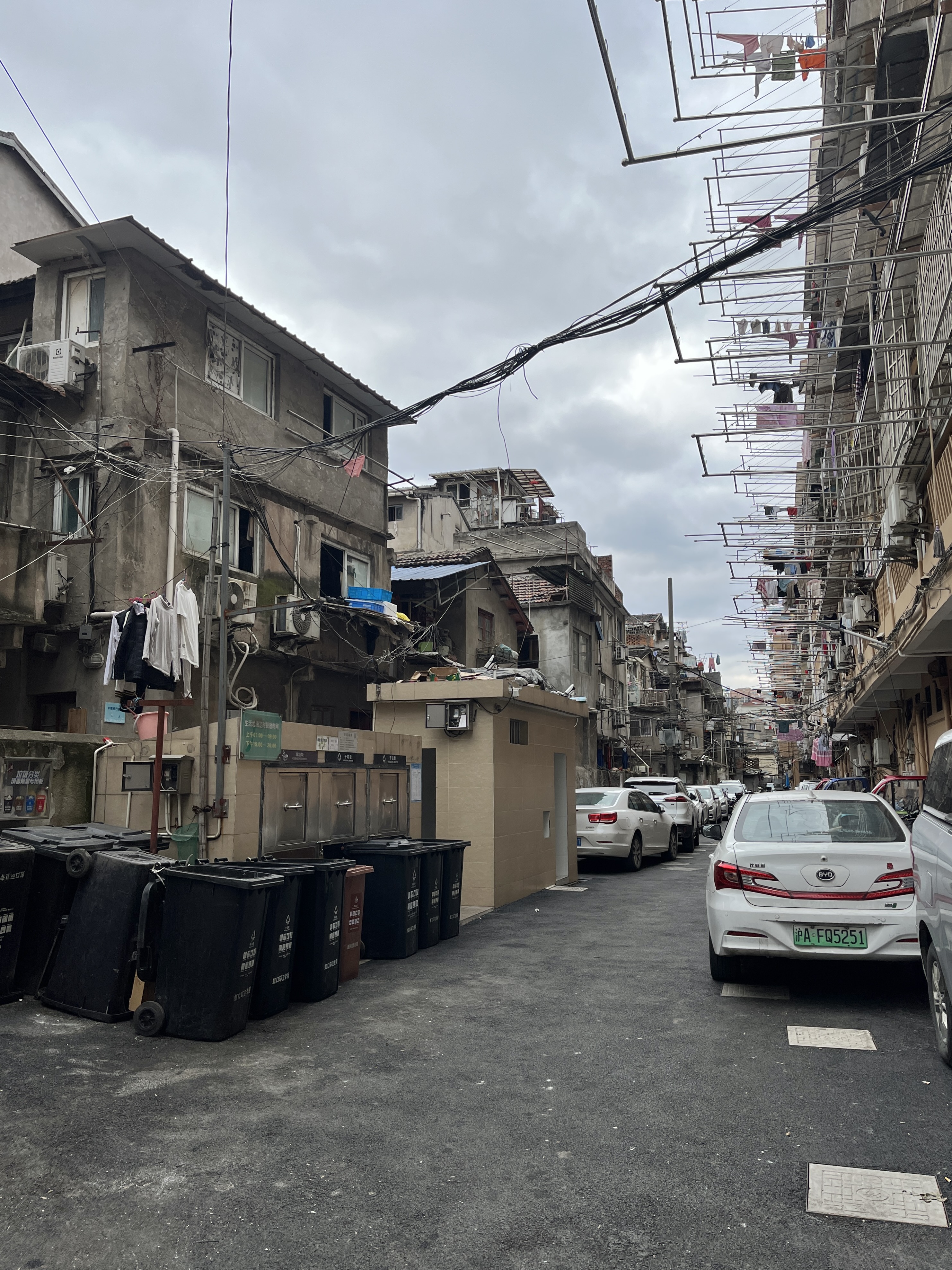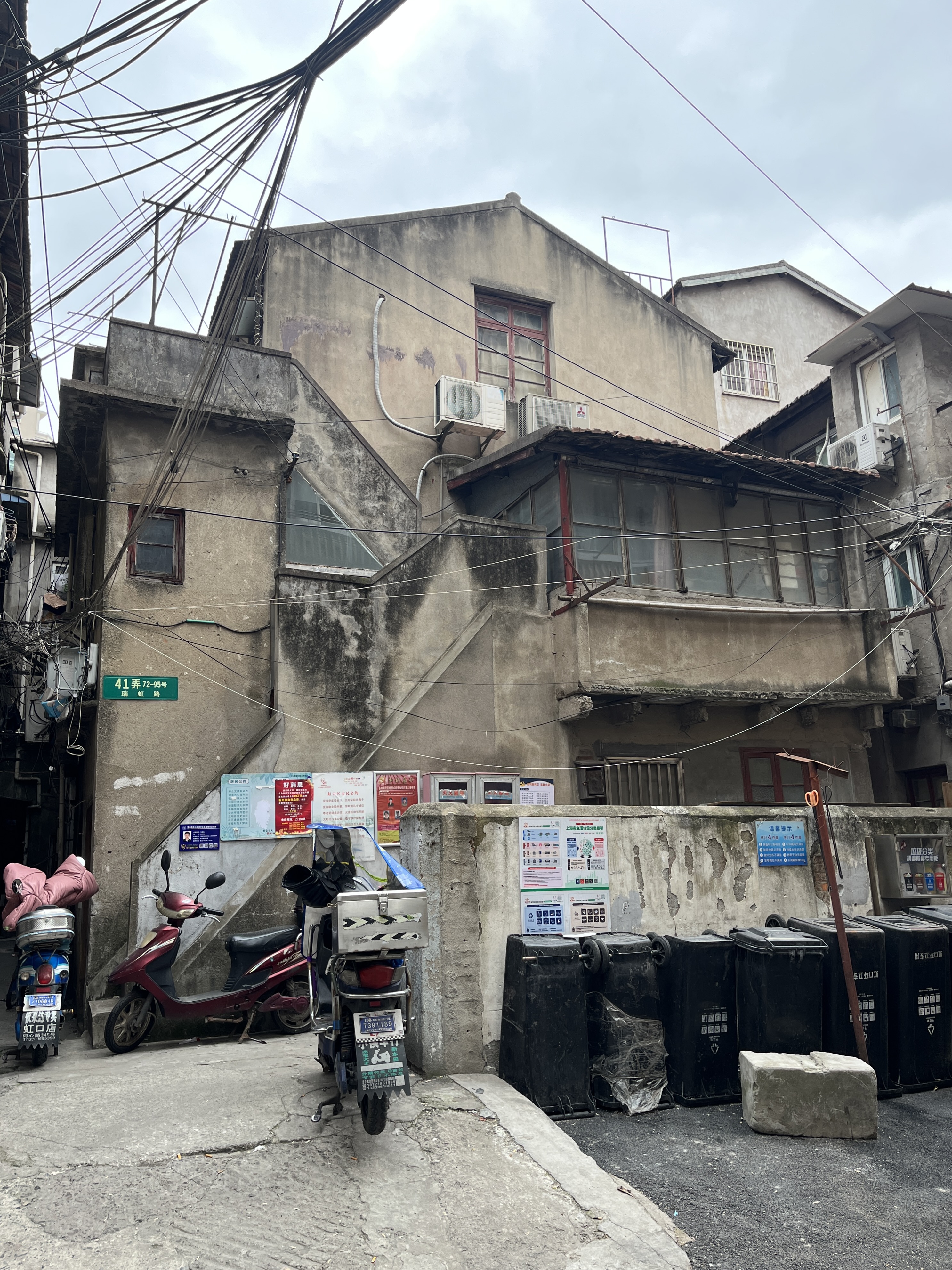The urban village features a handshake building layout, which is relatively uncommon in Shanghai today.